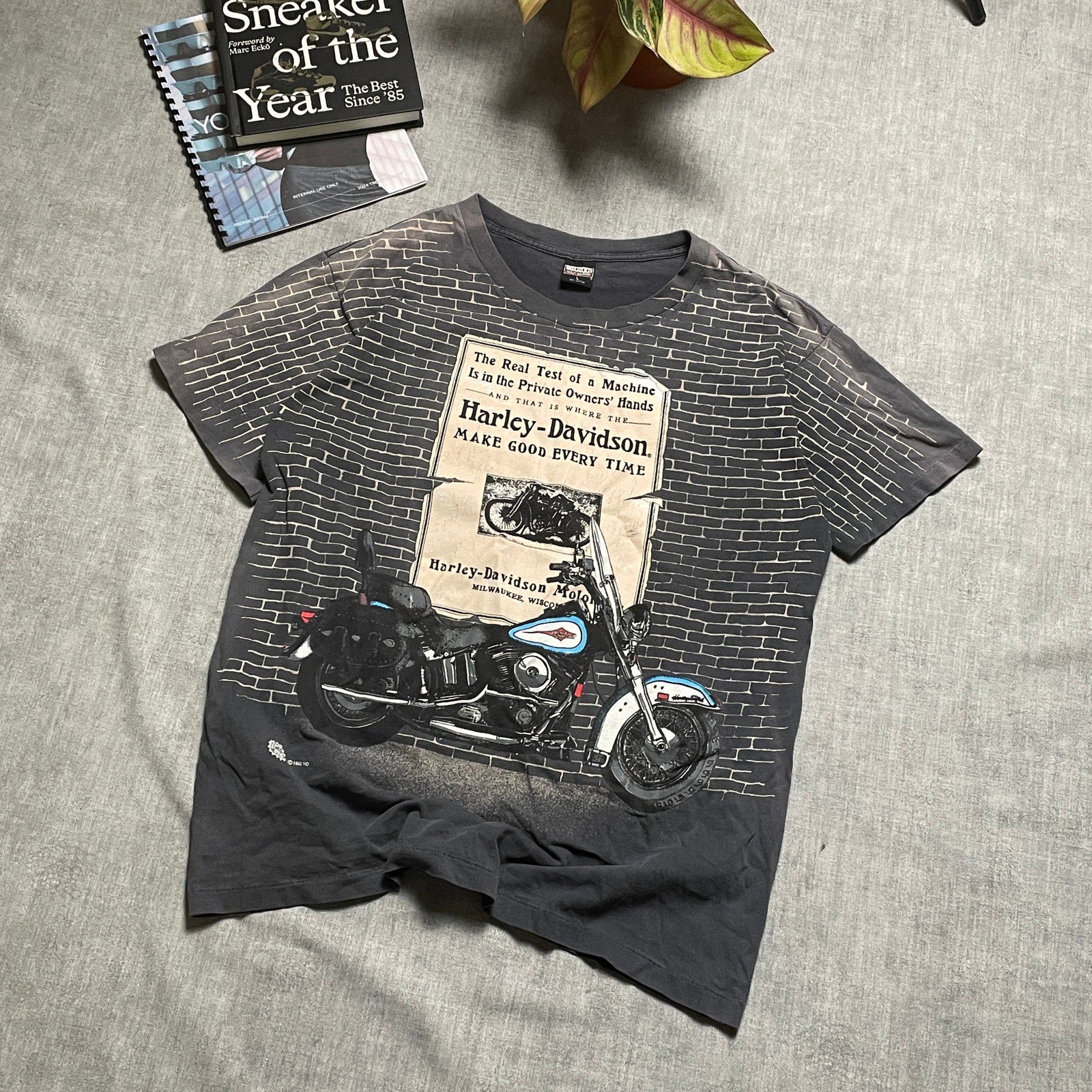 Harley Davidson vintage AOP bike tee L