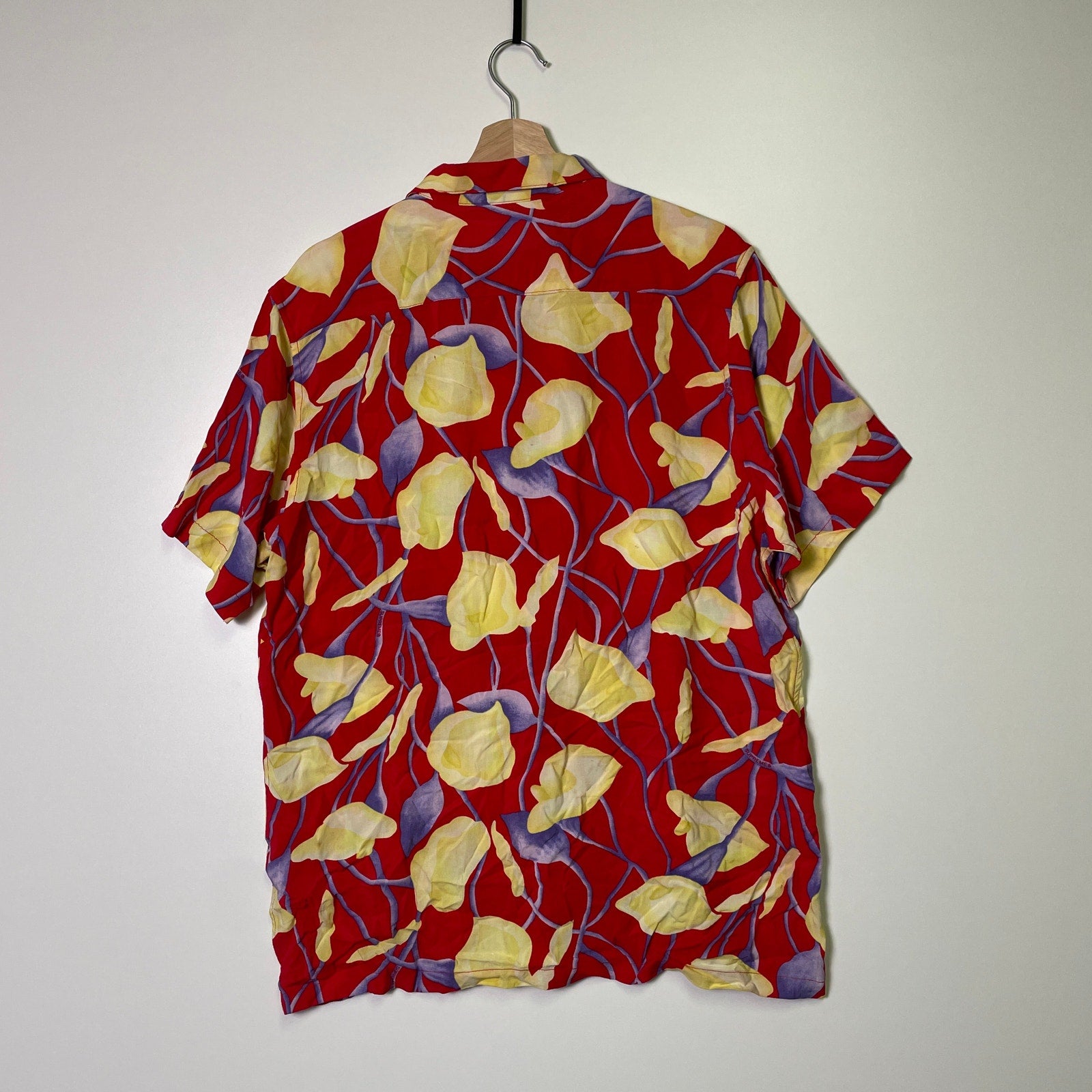 Supreme Lily Hawaiian Shirt Men L Red Floral Short Sleeves Spread Collar Rayon