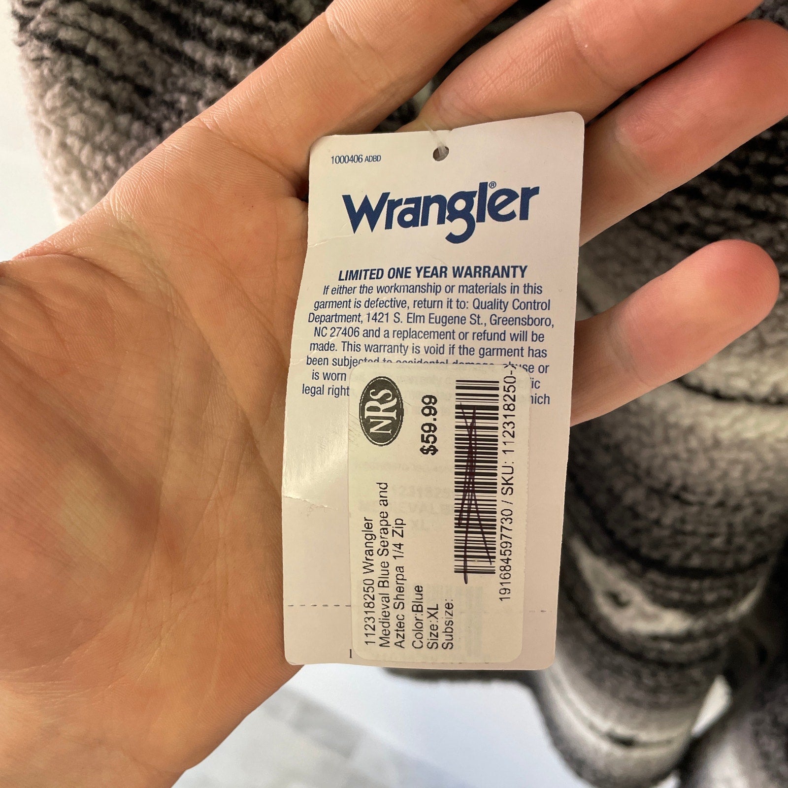 Wrangler 1/4 Zip Aztec Fleece Pullover XL NWT
